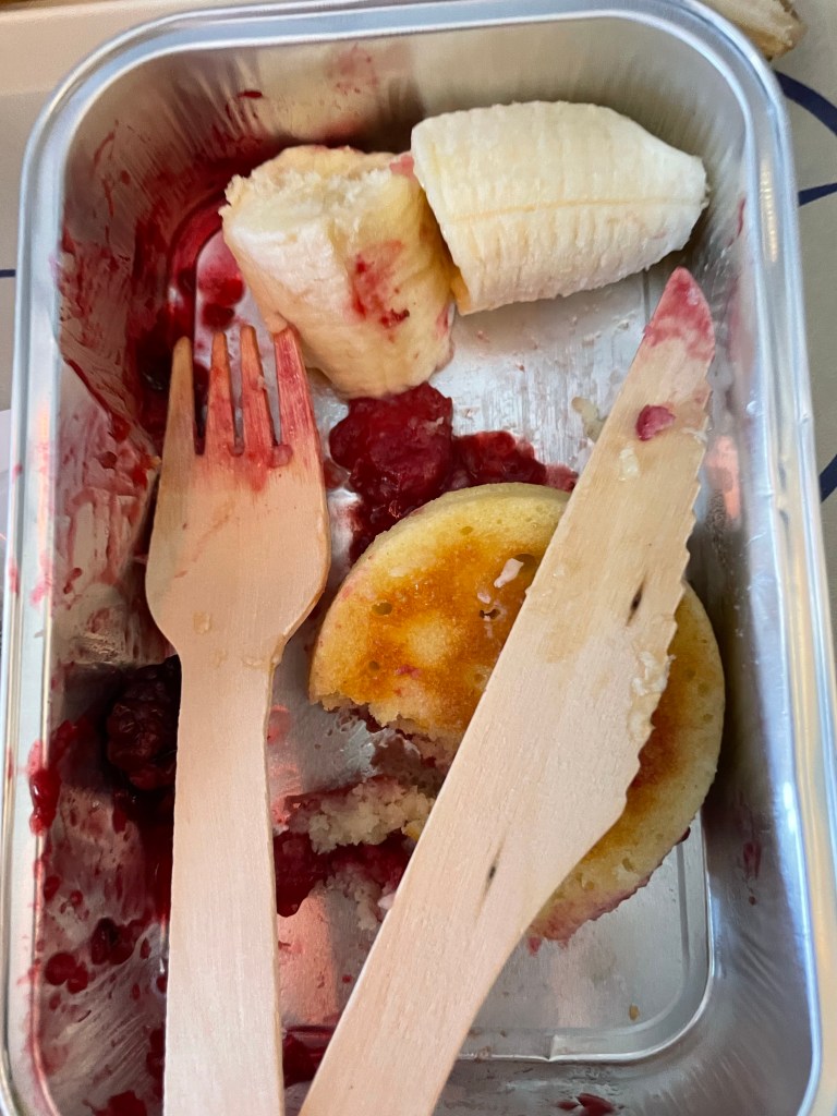 În timp ce mă delectam gustul lemnului din tacâmurile eco servite în Lot, mestecând clătitele nu prea reușite pe care le-am primit (poză mai sus, cu banana pusă preventiv de mine în bagaj), mi-am zis să mai scriu câteva rânduri cu motivele pentru care nu recomand LOT-ul.